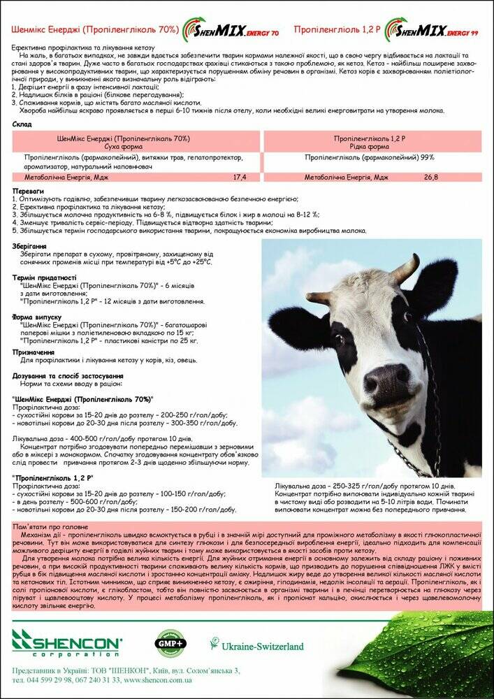 ШенМікс Енерджі пропіленгліколь 70% (суха фома) та Пропіленгліколь фармакопейний 99% (рідка форма)