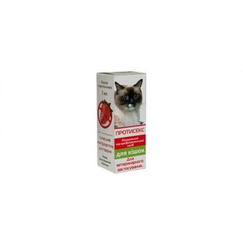 Протисекс - гормональний препарат, який містить мегестрола ацетат. Гормон діє на гипотоламо-гіпофізарну систему, блокуючи секрецію гонадотропних гормонів. При застосуванні тваринам до початку тічки він запобігає овуляції, при застосуванні на початку фолікулярної фази (перший-третій день початку тічки) - призводить до її припинення. Мегестрол ацетат легко абсорбується в кишечнику, біотрансформується в печінці та у вигляді солей протягом 1-2 днів виводиться з організму тварини з сечею. Через 2-3 місяці після відміни препарату відбувається повне відновлення репродуктивної функції організму.
