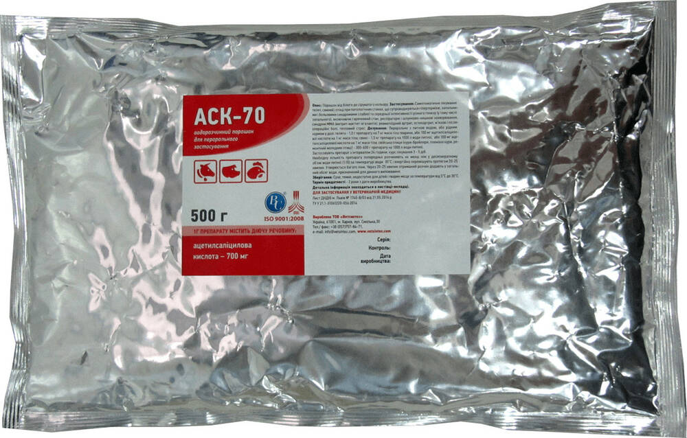 Протизапальний ветеринарний препарат АСК-70 (ацетилсаліцилова кислота) 500 г, Ветсинтез