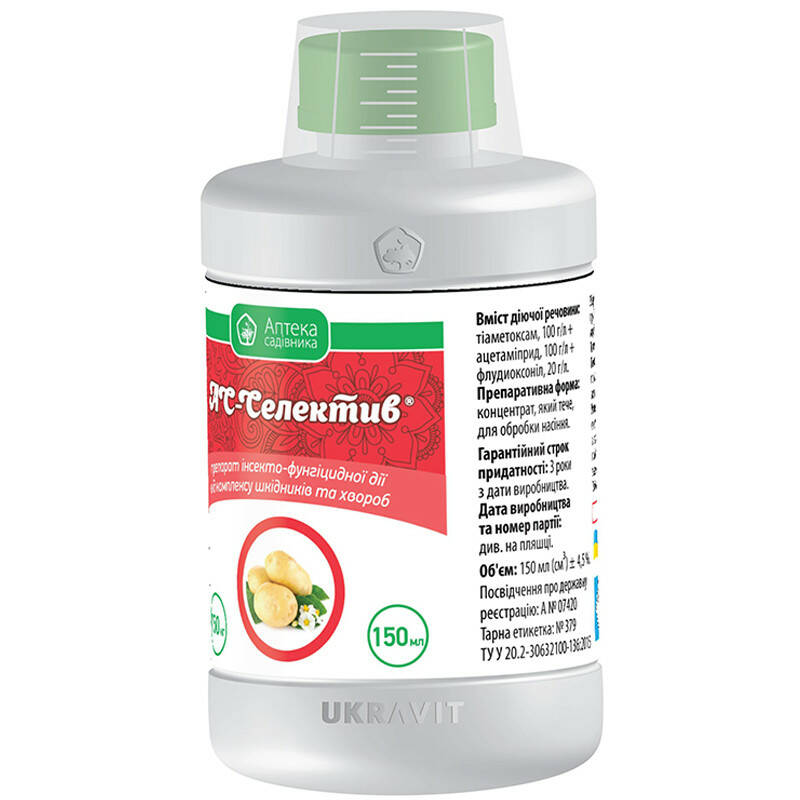 АС-Селектив - новітній інсекто-фунгіцид для протруювання бульб картоплі перед їх посадкою в грунт. Контролює комплекс хвороб і ґрунтових шкідників та запобігає їх поширенню на протязі вегетації культури.