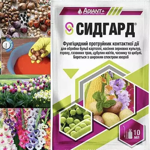 Протруйник «Сідгард» використовується для захисту від хвороб, які викликані грибами з класів Базідіоміцетів та Аскоміцетів. Препарат не шкодить корисним мікроорганізмам. Поставляється у флаконах обсягом 10 мл.
