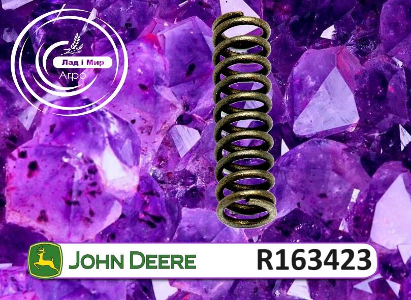 Пружина R163423 до техніки John Deere Компанія John Deere одна з самих популярних та відомих серед виробників запчастин до сільгосптехніки. Надійність та якість продукції визнана усім світом. Про це свідчить представництво техніки виробника John Deere на усіх континентах. Ви можете замовити агрозапчастини Пружина R163423 до техніки John Deere від виробника John Deere на нашому сайті ladimiragro.com.ua. Якщо у Вас виникли додаткові запитання по запчастині Пружина R163423 до техніки John Deere до техніки John Deere, Ви можете зателефонувати за телефонними номерами. Всі номери вказані на сайті ladimiragro.com.ua. Наші фахівці мають великий досвід. Вони нададуть всю вичерпну інформацію на агрозапчастини до техніки John Deere. Також в разі випадку, запропонують альтернативу. Це можуть бути інші агрозапчастини до сільгосптехніки таких відомих виробників як Claas,  New Holland, Challenger, Fendt, Great Plains, Horsch, Case, Kinze, Massey Ferguson. Компанія “Лад і Мир агро” – це Ваш надійний партнер. Ми зробимо все можливе і неможливе. Ми якомога швидко доставимо до Вас Пружина R163423 до техніки John Deere до техніки John Deere в найкоротший термін. Ми співпрацюємо з усіма перевізниками по всій Україні. Лад і Мир Вашому господарству! Переглянути інші товари виробника John Deere на нашому сайті. Компанія ТОВ «Лад і мир агро» є надійним партнером для сільськогосподарського виробника для замовлення оригінальної запчастини на сільськогосподарську техніку. Головним принципом є надання професійної підтримки і забезпечення потреб в запасних частинах для агротехніки для кожного клієнта нашої компанії. У нас ви можете замовити оригінальні агрозапчастини від таких відомих виробників, як Claas, Challenger, Fendt, Great Plains, Horsch, John Deere, Kinze, Massey Ferguson та інших. Для цього можете перейти до нашого каталогу – агрозапчастини