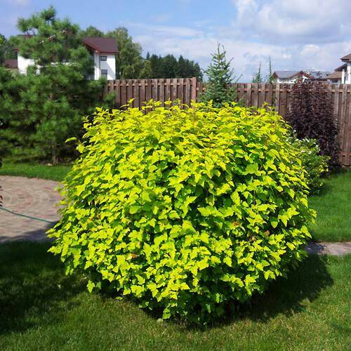 Листя: овальне, 3-5-лопатеве, схоже на калинове, навесні яскраво-жовте, влітку може зеленіти (особливо в тіні), восени – насичено золотисте.