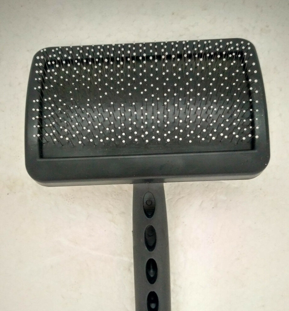 Ця щітка здійснює м'який і дбайливий догляд за волосяним покривом і підрощених цуценят собак завдяки тонким металевим щетинкам, не травмують ніжну шкіру молодняку.