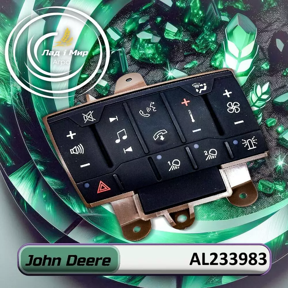 Пульт керування AL233983 до техніки John Deere Компанія John Deere одна з самих популярних та відомих серед виробників запчастин до сільгосптехніки. Надійність та якість продукції визнана усім світом. Про це свідчить представництво техніки виробника John Deere на усіх континентах. Ви можете замовити агрозапчастини Пульт керування AL233983 до техніки John Deere від виробника John Deere на нашому сайті ladimiragro.com.ua. Якщо у Вас виникли додаткові запитання по запчастині Пульт керування AL233983 до техніки John Deere, Ви можете зателефонувати за телефонними номерами. Всі номери вказані на сайті ladimiragro.com.ua. Наші фахівці мають великий досвід. Вони нададуть всю вичерпну інформацію на агрозапчастини до техніки John Deere. Також в разі випадку, запропонують альтернативу. Це можуть бути інші агрозапчастини до сільгосптехніки таких відомих виробників як Claas,  New Holland, Challenger, Fendt, Great Plains, Horsch, Case, Kinze, Massey Ferguson. Компанія “Лад і Мир агро” – це Ваш надійний партнер. Ми зробимо все можливе і неможливе. Ми якомога швидко доставимо до Вас Пульт керування AL233983 до техніки John Deere в найкоротший термін. Ми співпрацюємо з усіма перевізниками по всій Україні. Лад і Мир Вашому господарству! Переглянути інші товари виробника John Deere на нашому сайті. У нас ви можете замовити оригінальні агрозапчастини від таких відомих виробників, як John Deere, Claas, Massey Ferguson, Case, Vaderstad, Geringhoff, Challenger, Fendt, Great Plains, Horsch, Kinze, Precision Planting та інших. Для цього можете перейти до нашого каталогу – агрозапчастини Ми пропонуємо якісні аналоги запчастин від европейского бренда Olimp9. Це самі затребувані запчастини до сіялок, обприскувачів, розпушувачів, комбайнів та тракторів John Deere, а також до всіх інших брендів Claas, Fendt, Horsch, Massey Ferguson, Case та багато інших. Також ми пропонуємо найякісніший REMAN на запчастини до комбайнів та тракторів, та запчастини власного виробництва від Lad i Mir Parts.