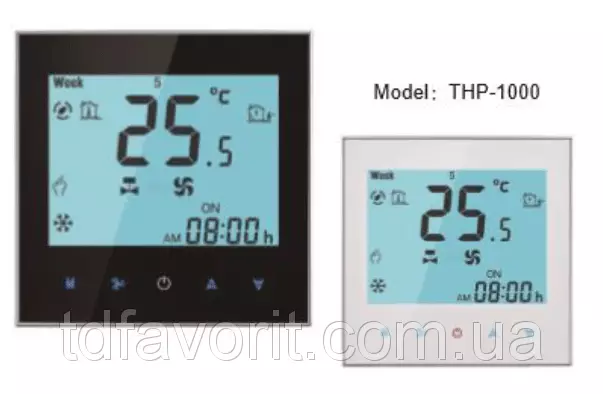 кімнатний термостат для фанкойлів, який використовується для контролю роботи вентиляторів і клапанів в кондиціонерах. Цей пристрій підтримує роздільну можливість підтримки комфортної температури в приміщенні і заощадження енергії.