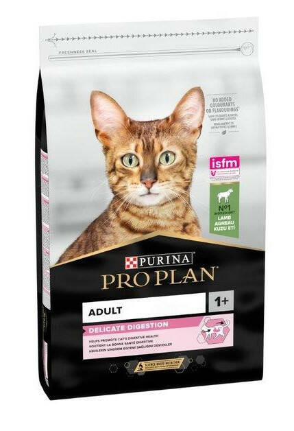 Purina Pro Plan Cat Delicate з ягням - сухий повнораціонний корм спеціально розроблений для дорослих котів з чутливою системою травлення. Містить високоякісні відібрані джерелами білку без додавання пшениці, для підтримки харчової переносимості. Із вмістом аргініна, антиоксидантів та омега-3 жирних кислот для підтримки здоров’я нирок. Ягня – інгредієнт номер 1. Смачний рецепт, що може задовольнити навіть вибагливого кота. Без доданих барвників та ароматизаторів. У Purina PRO PLAN наша команда дієтологів та досвідчених ветеринарів застосовує передові досягнення науки для розробки нашого збалансованого та ефективного поєднання поживних речовин для вашого вихованця.