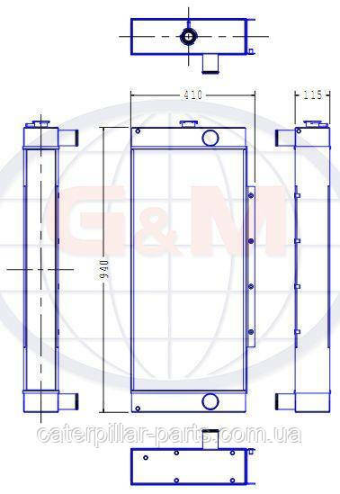 Опис 30/927229; 332C0971; 30927229; 332-C0971; 30-927229 радіатор охолодження двигуна на гусеничний екскаватор JCB JS110 JS130W JS115 JS160W  JS180 . Система охолодження мотора крім радіатора включає водяну помпу (водяний насос), термостат і вентилятор для примусового обдування радіатора. Охолодна рідина примусово циркулює (за рахунок помпи) від сорочки охолодження двигуна до радіатора і назад. Термостат регулює кількість рідини, що подається до радіатора.