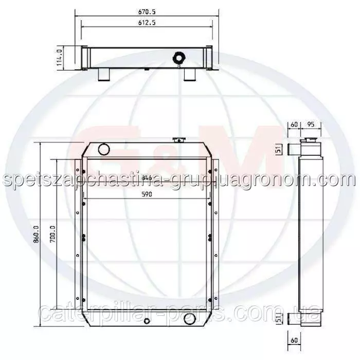 Радіатор водяний jcb 30/921800 30/925816 Параметри та розміри