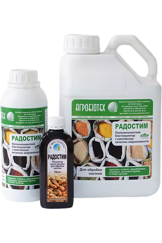 Радостим используют для предпосевной обработки семян зерновых, зернобобовых, технических культур, а также для опрыскивания посевов этих культур и газонных трав, интродукции больших деревьев, кустарников. Препарат применяется также привыращивании грибов.