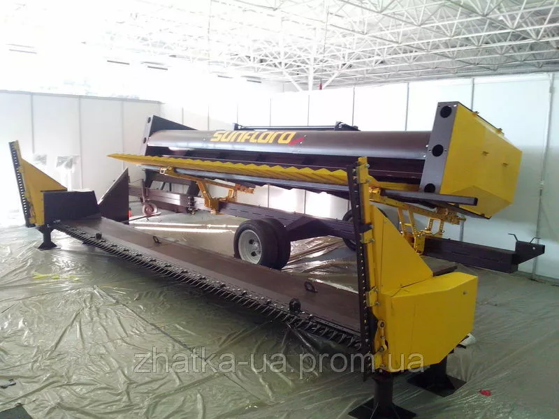 Приспособление для уборки рапса "RapeFiore" (рапсовый стол), предназначен для переоборудования зерновых жаток отечественных и импортных комбайнов для прямого комбайнирования рапса и агрегатируется со шнековыми жатками отечественных и импортных комбайнов (от 4 м до 9 м)
