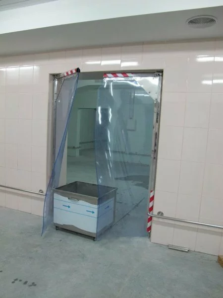 Стулки дверей виготовлені з прозорої ПВХ плівки, що дозволяє візуально контролювати простір за дверима прорізу, що підвищує безпеку робіт і персоналу. Маятникові двері можуть комплектуватися автоматичним управлінням.