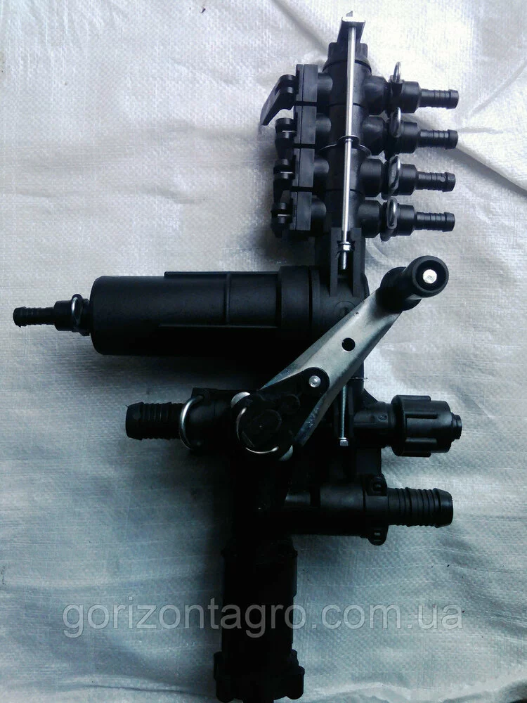 Розподільник чотирисекційний на обприскувач із металевою ручкою на крані. Є міцнішим на крані та рідше виходить із ладу.
