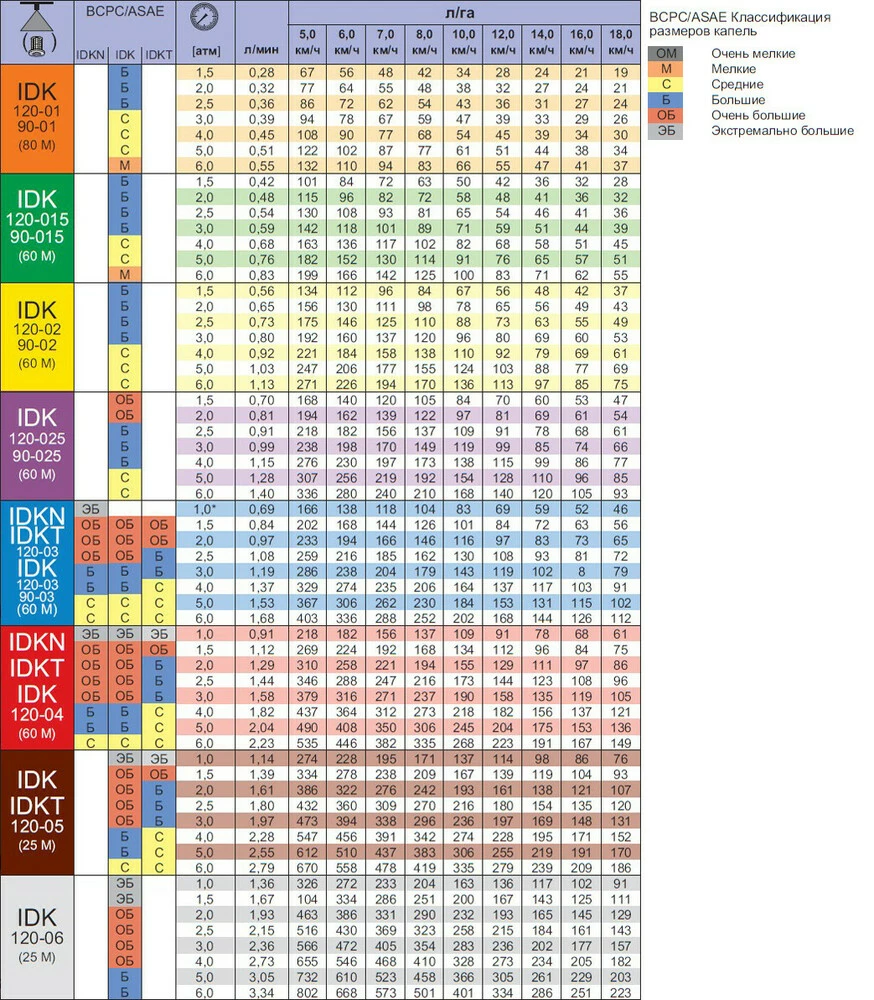 • При тиску вище 3 бар поступаються відомим антисносовым распылителям ID, IDN через більш дрібного спектру крапель