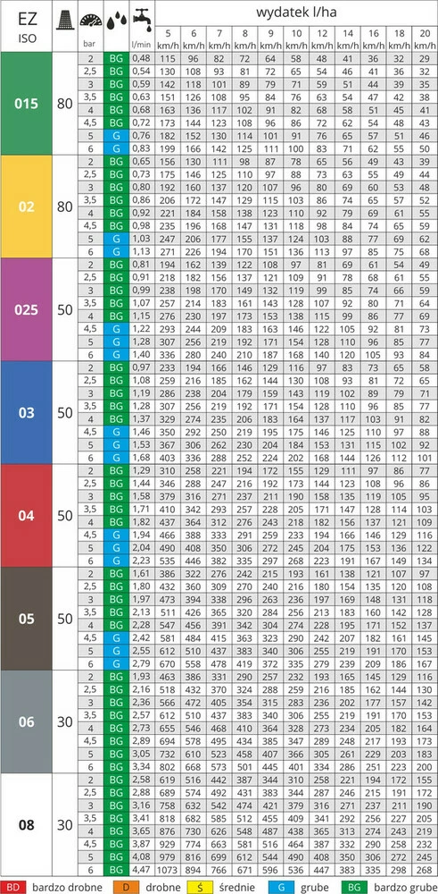 Формирует большие и очень большие капли с высокой устойчивостью к сносу, что позволяет выполнять опрыскивание при неблагоприятных условиях ( скорость ветра до 8м/с, низкая влажность воздуха, высокая температура)