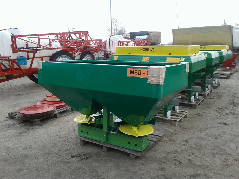 Розкидач мінеральних добрив МВД-1200 – збільшує врожайність земель сільськогосподарського призначення. Забезпечує високу ефективність аграрного виробництва. Розкидає на оброблюваних ділянках гранули мінерального добрива, зернові та сидеральних культур. Агрегат працює в різних кліматичних умовах. Розрахований обробляти ділянки з різними виробничими параметрами. (Ширина охоплення, потреби у збагаченні ґрунту, тощо). Розкидач працює сумісно із базовою тяговою технікою класу 1,4-2. Параметри ширини захоплення та швидкості виконання робіт гарантують високу продуктивність. Без загальної втрати ефективності.