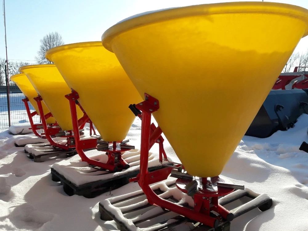 Разбрасыватель минеральных удобрений (Польша) тракторный навесной применяется для поверхностного внесения минеральных удобрений в гранулированном виде, а также для посева зерновых культур и подкормки в период вегитации, что влияет на урожайность. Загрузка машины производится в полевых условиях. Доза внесения удобрений зависит от регулирования механизма управления дозирующими заслонками и рабочей скорости движения