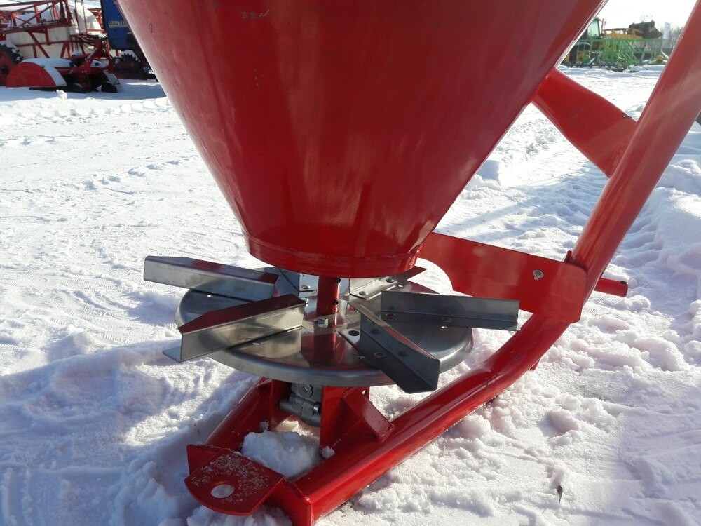 Разбрасыватель минеральных удобрений (Польша) тракторный навесной применяется для поверхностного внесения минеральных удобрений в гранулированном виде, а также для посева зерновых культур и подкормки в период вегитации, что влияет на урожайность. Загрузка машины производится в полевых условиях. Доза внесения удобрений зависит от регулирования механизма управления дозирующими заслонками и рабочей скорости движения.