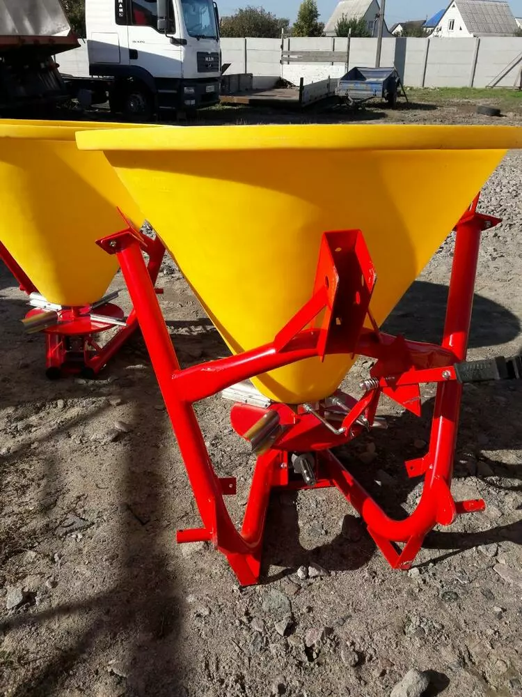 Разбрасыватель минеральных удобрений (Польша) тракторный навесной применяется для поверхностного внесения минеральных удобрений в гранулированном виде, а также для посева зерновых культур и подкормки в период вегитации, что влияет на урожайность. Загрузка машины производится в полевых условиях. Доза внесения удобрений зависит от регулирования механизма управления дозирующими заслонками и рабочей скорости движения