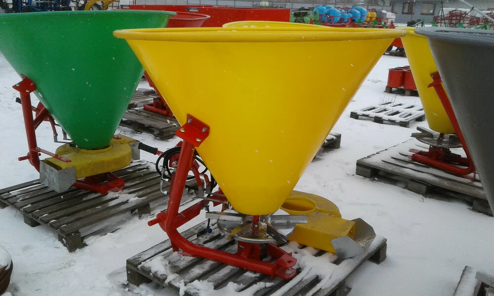 Навісні тукоразбрасыватели призначені для поверхневого внесення гранульованих і пилоподібних добрив на оброблюваних полях, луках, стернях та пасовищах. Для кріплення цих машин використовується трьох точкова система гідравлічного підйомника трактора вони забезпечені також одним або двома висівними дисками. Туковий ящик відноситься до сталевих конструкцій, покритим порошковими фарбами, або ж він виготовляється з синтетичних матеріалів.