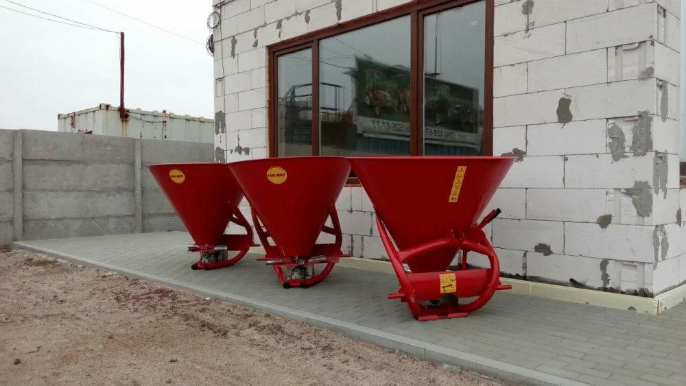 Разбрасыватель минеральных удобрений (Польша) тракторный навесной применяется для поверхностного внесения минеральных удобрений в гранулированном виде, а также для посева зерновых культур и подкормки в период вегитации, что влияет на урожайность. Загрузка машины проводится в полевых условиях. Доза внесения удобрений зависит от регулирования механизма управления дозирующими заслонками и рабочей скорости движения.