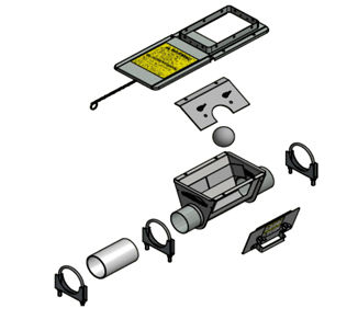 Розвантажувач на одну кормолінію, наскрізний, зварений. для шнекової системи подачі корму, труба ø75 мм. У наборі анкерний болт, засувка, підшипник і адаптер для блоку управління.