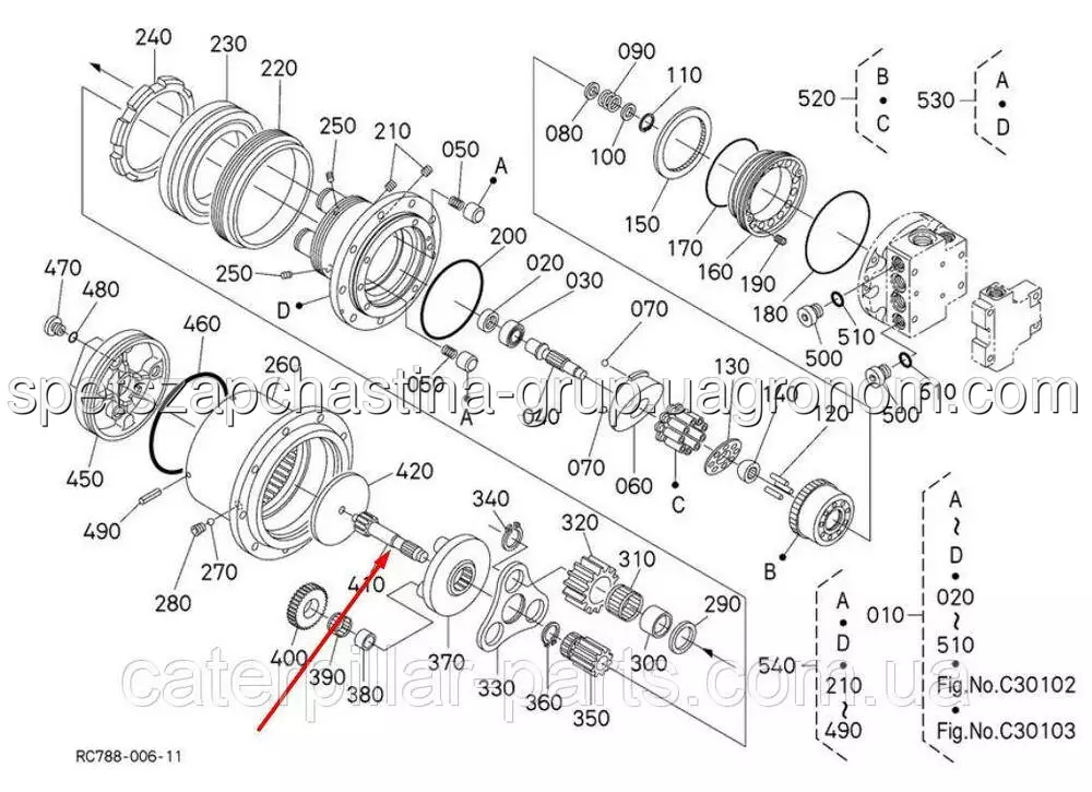 RC661-13542 Вал головної передачі KUBOTA KX033-4. Ремонт