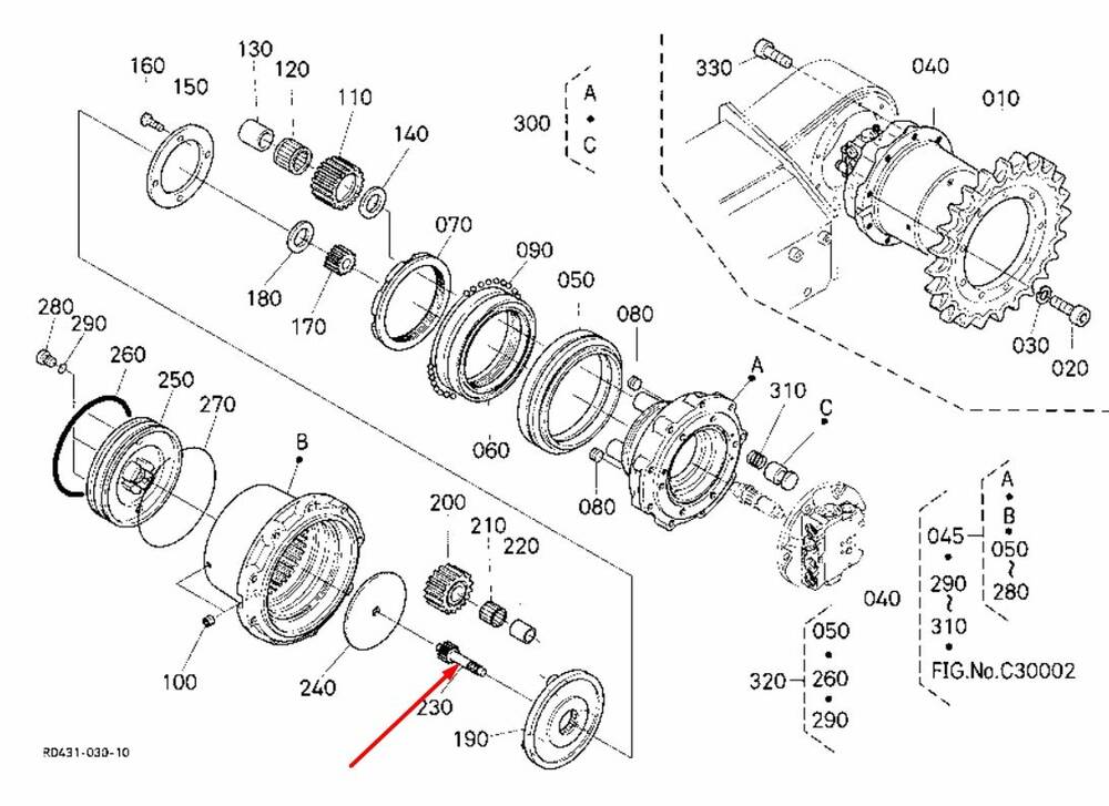RD53178210 Вал-редуктор ступиці kubota U45-3