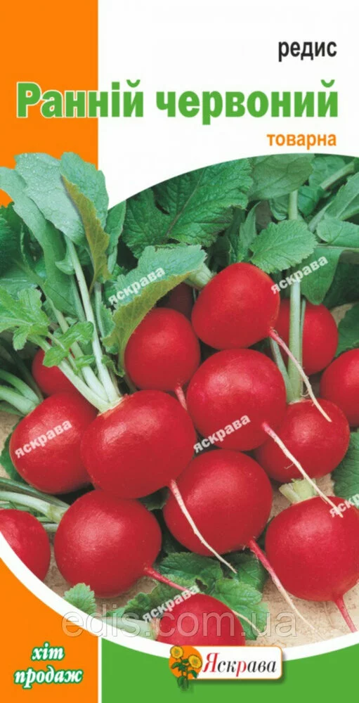Редис Ранній червоний 3 гРанньостиглий, від сходів до першого збору 24-28 днів. Коренеплід червоний, округлий, масою 8-14 г, занурений в грунт на 2/3. Смакові якості високі. Стійкий до цвітіння. При нетривалих зберіганні коренеплоди не втрачають товарності.