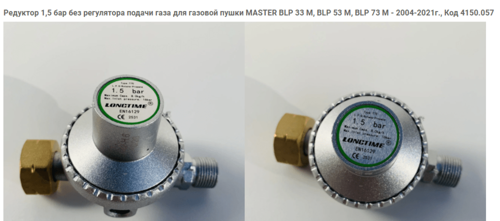 Редуктор 1,5 бар  без регулятора газовой пушки Master BLP 33-73 (1500 мбар)