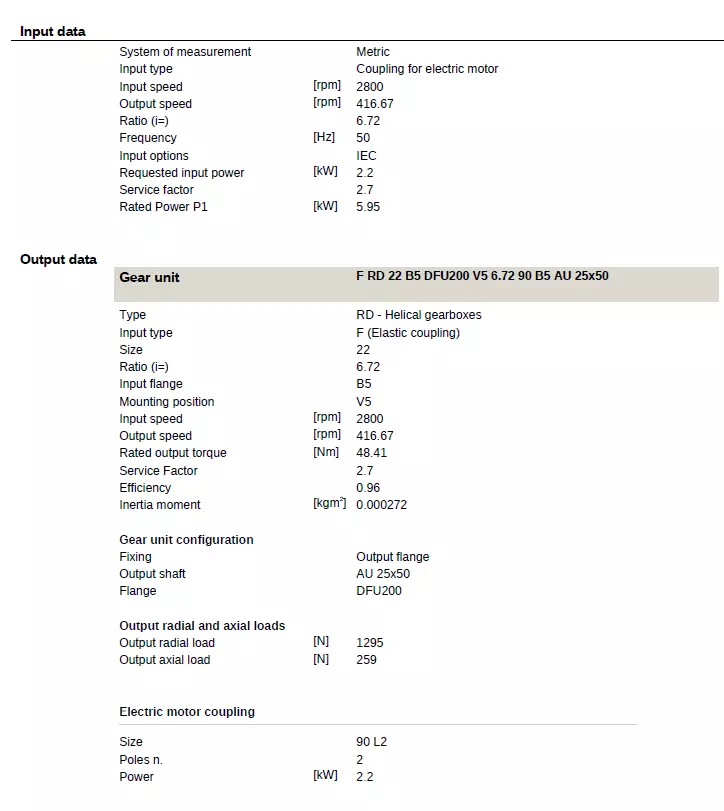 В соответствии с ISO6336/DIN 3990 (В среднем ресурс работы 15000 часов с сервис фактором FS=1) |