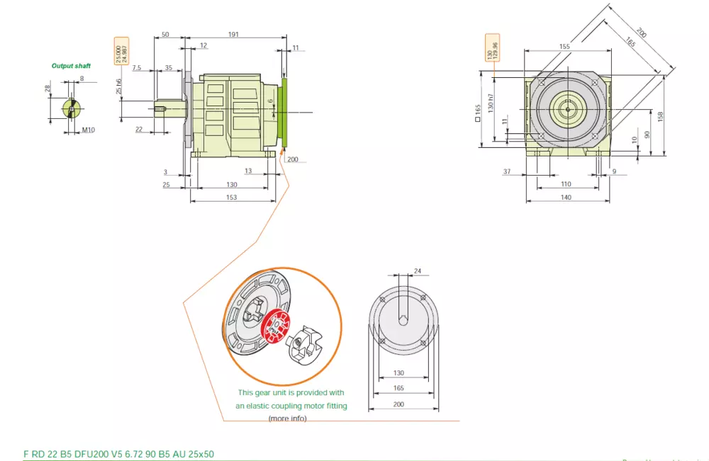 соответствуют стандартным размерам цилиндрических редукторов SEW