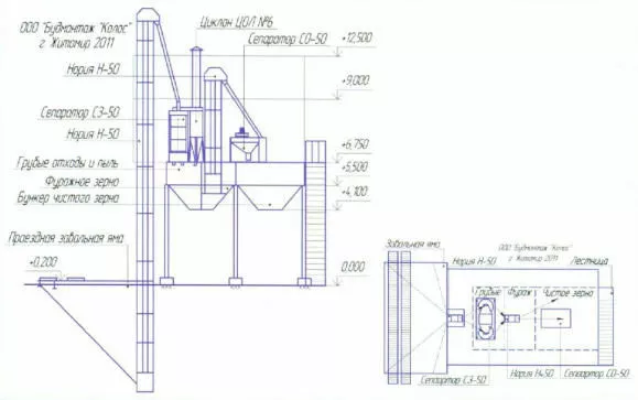 Під час проведення реконструкції враховуємо оптимальне розташування в наявній конструкції всіх агрегатів. Встановлюємо додатковий похилий в'їзд (пандус) та естакаду до приймального бункеру-транспортера для забезпечення прийому прибраного комбайном оберемка зерна прямо з транспортних засобів великої місткості.