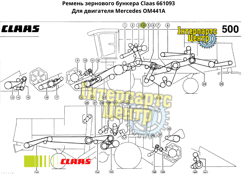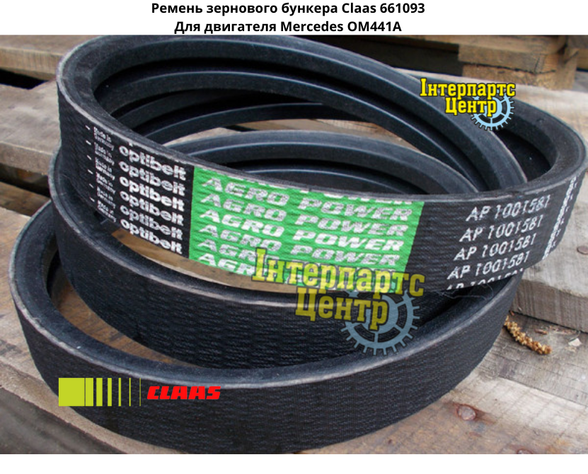 Привідний ремінь зернового бункера/ соломоподрібнювача комбайнів Claas, двигун OM441A.