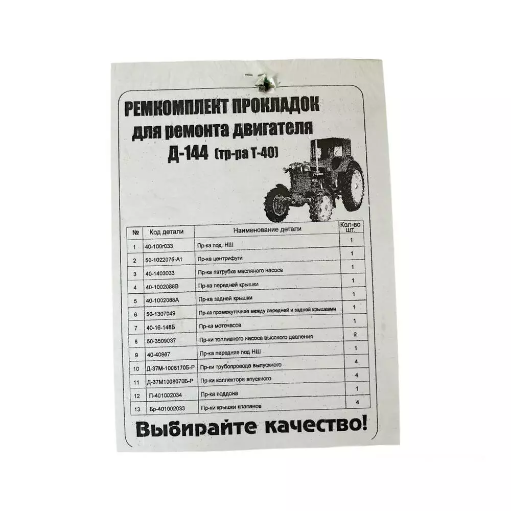 Ремкомплект прокладок двигуна Д-144 (трактора Т-40) (пароніт)