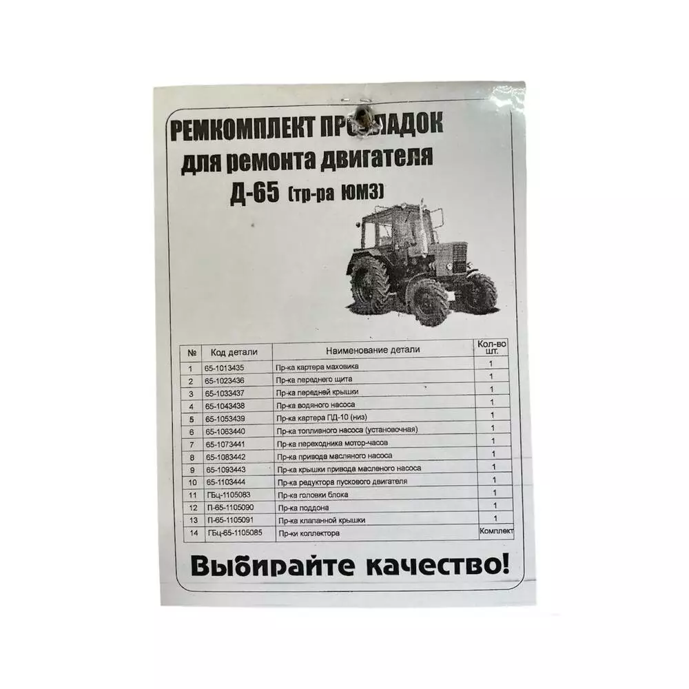 Ремкомплект прокладок двигуна Д-65 (трактора ЮМЗ) (пароніт)