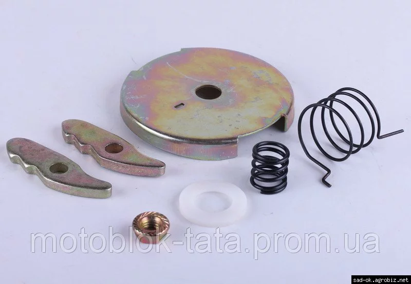 Ремкомплект ручного стартера - 178F подходит на дизельные двигатели мотоблоков, генераторов и др.техники мощностью 6 л.с. с воздушным охлаждением. Комплект: тарелка с гайкой и шайбой, собачки - 2шт., пружины - 2шт. Вес к-т: 115 гр.