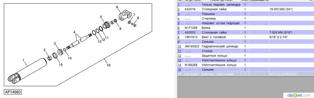 ремнабір циліндра гідравлічного JOHN DEERE AN193827