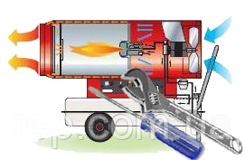 Производим техническое обслуживание и ремонт теплогенераторов, жидкотопливных обогревателей (тепловых пушек), электрических нагревателей (тепловентиляторов) всех видов представленных в Украине.
