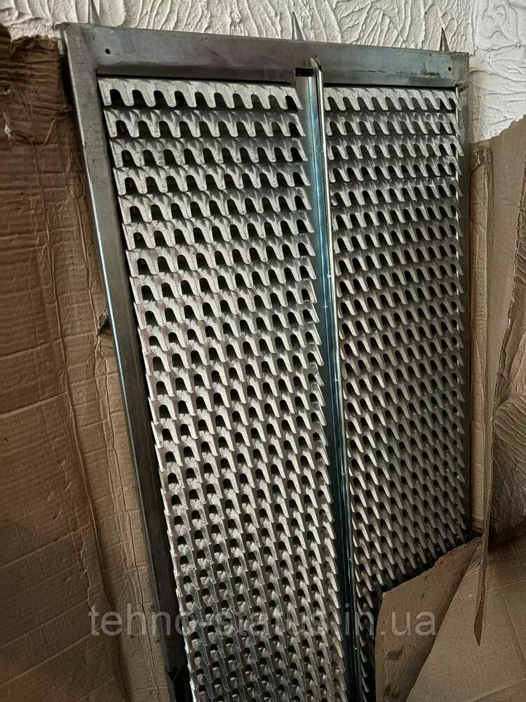 Оригінальне верхнє решето CLAAS (1739х564 мм) — це жалюзійний тип решета з регульованими гребінками, призначений для первинної сепарації зернової маси. Виготовлене з високоміцної оцинкованої сталі зі спеціальним профілем жалюзі, що запобігає забиванню та забезпечує рівномірний розподіл повітряного потоку. Підходить для комбайнів Claas Mega та їх ліцензійних копій (Дніпро-350). Посилена рама гарантує стійкість до вібраційних навантажень.