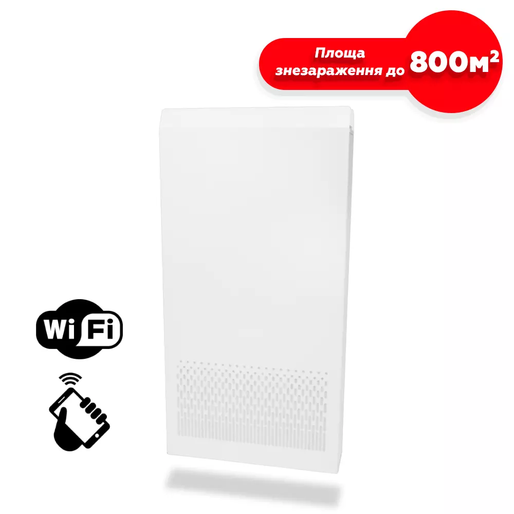 Система побудована на основі 12 безозонових бактерицидних ламп низького тиску по 30 Вт, що випромінюють ультрафіолет із довжиною хвилі 253,7 нм. Потужний вентилятор забезпечує примусову циркуляцію значних об’ємів повітря (до 1192 м³/год), гарантуючи швидке знезараження. Корпус виготовлений із якісної сталі та покритий полімерним захисним шаром, стійким до дезінфекційних засобів. Для обслуговування у верхній частині передбачена кришка для доступу до ламп і електронних компонентів. У стандартну комплектацію входить Wi-Fi модуль управління.