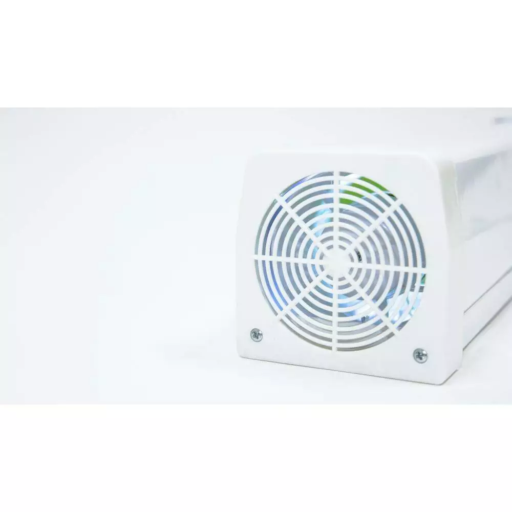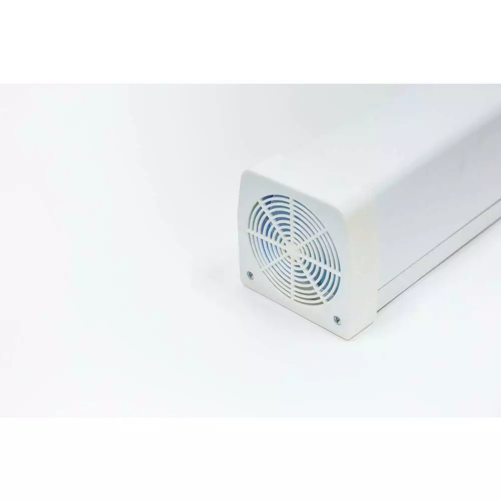 Модель поєднує компактні розміри (655×120×120 мм) з високою ефективністю та надійністю. Корпус виготовлений з металу та пофарбований білою порошковою фарбою, стійкою до дезінфекційних засобів. Рекомендована для використання в медичних закладах, офісах, навчальних приміщеннях, закладах громадського харчування, на харчових виробництвах, а також у житлових будинках і транспорті.