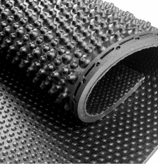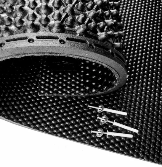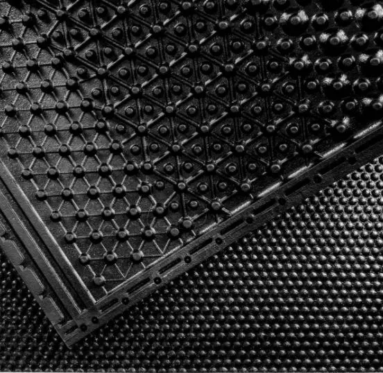 Гумові покриття для ферм настеляються під нахилом, що дозволяє залишати їх сухмими, оскільки вода стікає. Верхній шар - рельєфний, фактурний, що запобігає ковзанню копит та травмуванню тварини.