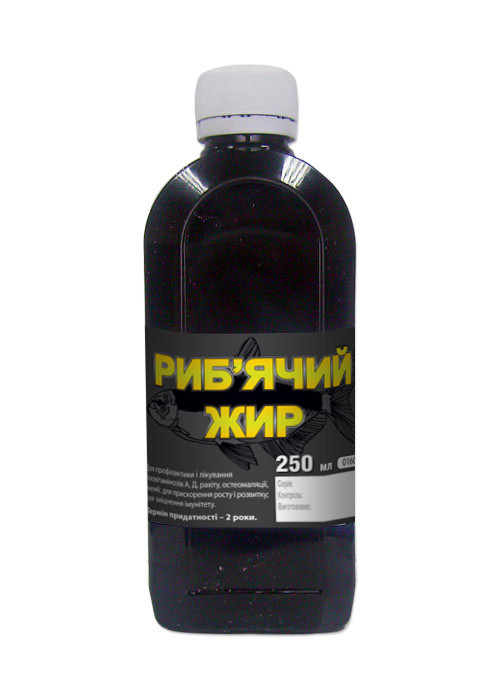 Рыбий жир ветеринарный – прозрачная маслянистая жидкость от светло-желтого до светло-коричневого цвета, со специфическим не сгоревшим запахом рыбы.