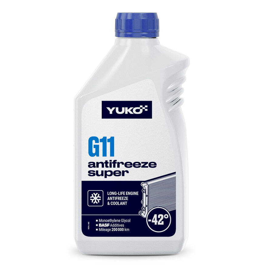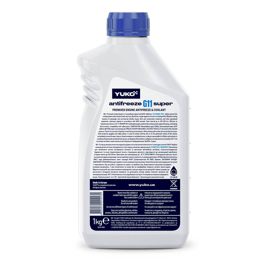 YUKO Antifreeze Super G11 (синій) - захистить ваш двигун від замерзання, перегріву, корозії та формування шкідливих відкладень. Надійний захист металевих деталей двигуна з чавуну, алюмінію, міді та сталі.
