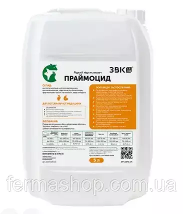 Рідкий підкислювач “Праймоцид” – продукт довершеного поєднання органічних кислот та хелатної сполуки міді для ефективної дії у кожному відділі шлунково-кишкового тракту тварин та птиці.
