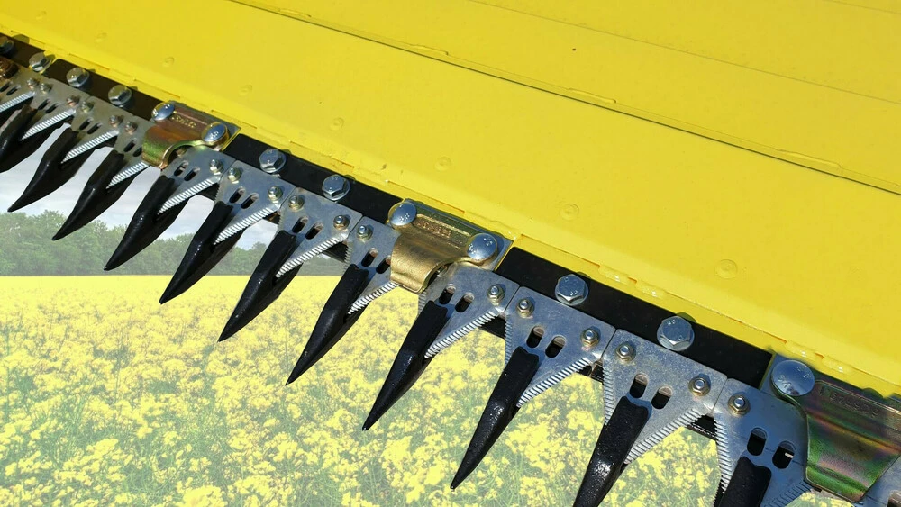 Бічні шкарпетки зернової жниварки з'єднуються з лівою і правою боковиною ріпакового столу і скріплюються талрепами (по два з одного боку). Редуктор системи зрізу ріпакового столу приводить в дію надійний клиновий ремінь від провідного шківа зернової жниварки. Одно з головних переваг ріпакового столу Rape Fiore - рівномірний розподіл ваги виробу на протирізальних пальцях зернової жниварки. Такий розподіл знижує навантаження на боковини зернової жниварки а так само виключає їх механічні ушкодження. Пристосування для прибирання ріпаку вільно розташовується на боковинах жниварки, за допомогою цього можна змінити кут атаки пристосування під різний стан культури.