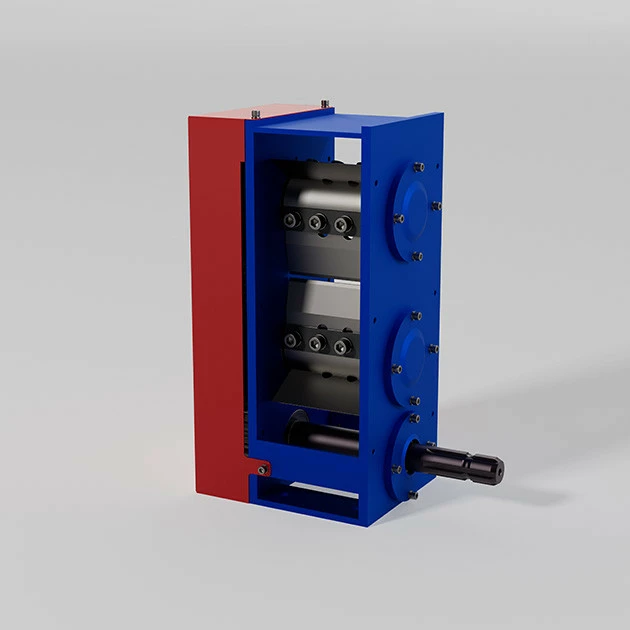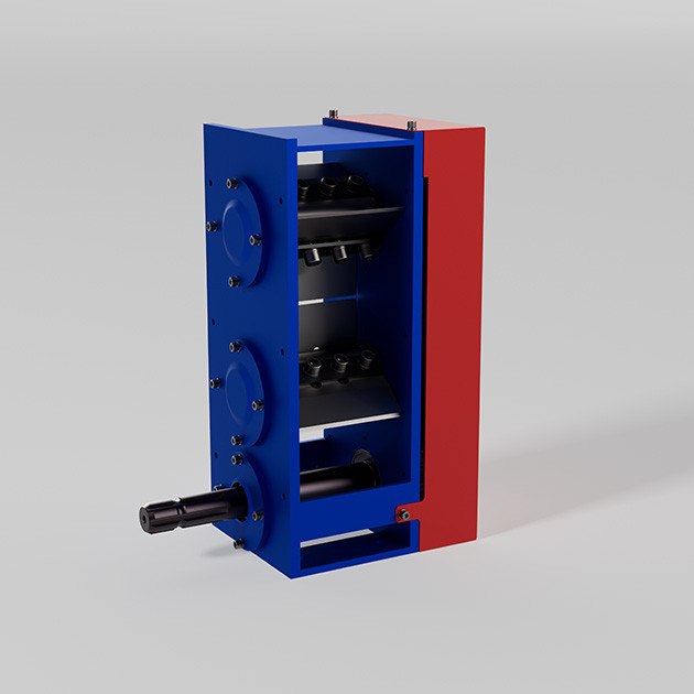 Робочі шестерні подрібнювача посаджені на конусну самозажимну муфту, що забезпечує крайній захист механізму при критичних навантаженнях.
