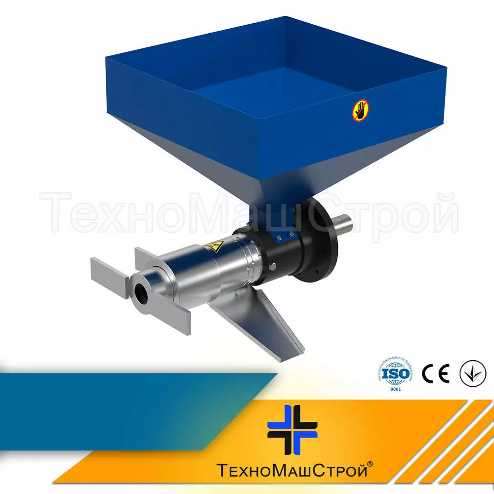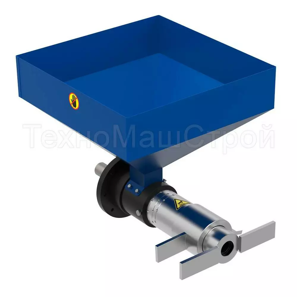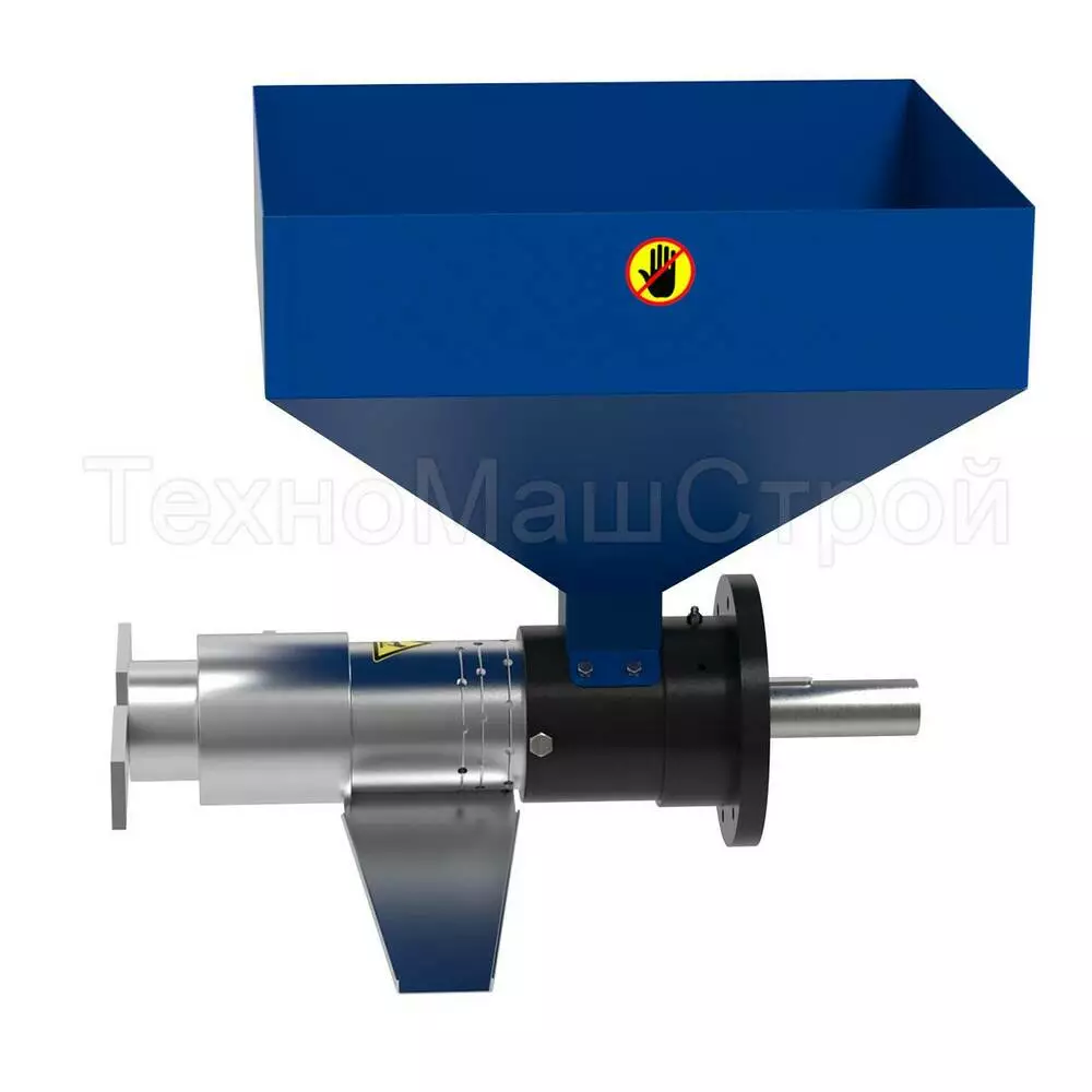 • Сировина поміщається в бункер і, проникаючи через заслінку, потрапляє в шнек.