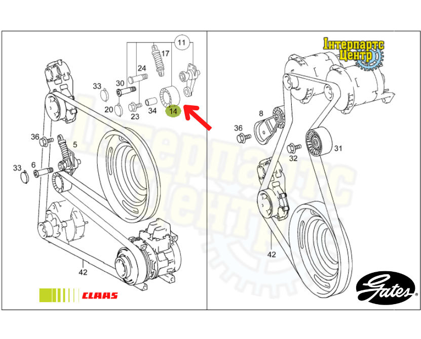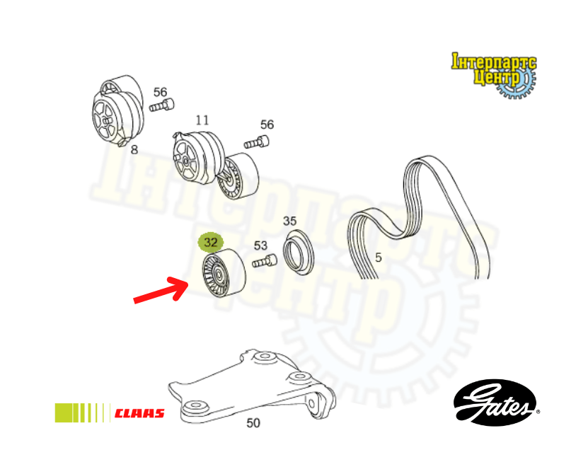 Ролик натягу паса приводу вентилятора двигуна комбайна Claas.